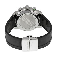 Функции: Индикация часов, минут при помощи центральных стрелок. Окошко даты на "6 часов". Хронограф. Счётчик 12 -ти часов расположен в положении " 10 часов", 30-минутный счётчик на " 2 часа", малая секундная стрелка на "6 часов".