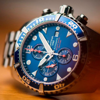 Корпус: Корпус из нержавеющей полированной/матовой стали. Вращающийся в одном направлении безель с 60 - минутной шкалой на полированном синем кольце. Синий циферблат. Стрелки и часовые индексы серебристого цвета с люминесцентным покрытием. Завинчивающаяся заводная коронка. Сапфировое стекло с антибликовым покрытием. Диаметр 46 мм. Водостойкость 300 м. Система DS.
