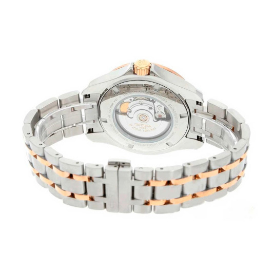 Корпус: Корпус из нержавеющей стали, безель - PVD-покрытие цвета розового золота. Сапфировое стекло с антибликовым покрытием. Светлый циферблат. Диаметр 41 мм. Водонепроницаемость 200 метров.