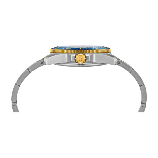 Корпус: Корпус выполнен из высококачественной стали с PVD покрытием. Алюминиевый вращающийся безель. Синий циферблат. Золотистые полированные стрелки и часовые индексы с покрытием Superluminova. Крупная индикация времени позволяет считывать показания с циферблата в любой ситуации. Сапфировое стекло с односторонним антибликовым покрытием устойчивое к появлению царапин, обладающее высокой прозрачностью. Диаметр: 38 мм. Водозащита: 300 м.