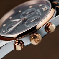 Функции: Индикация часов и минут при помощи центральных стрелок. Маленькая, отдельно вынесенная секундная стрелка, дата в положении "6 часов". Хронограф.
