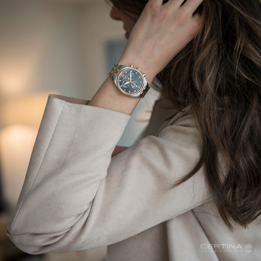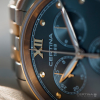 Корпус: Корпус из полированной/матовой нержавеющей стали с частичным PVD - покрытием. Серый циферблат украшен узором "гильоше", золотистые стрелки и часовые индексы. Сапфировое стекло. Диаметр 34.5 мм. Водостойкость 100 м. Система DS.