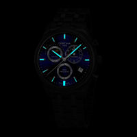 Корпус: Корпус из нержавеющей стали. Синий циферблат с серебристыми стрелками и рисками. Сапфировое стекло с антибликовым покрытием. Диаметр 42 мм. Водостойкость 100 м.