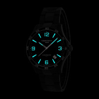 Корпус: Круглый корпус выполнен из нержавеющей стали 316L, поверхности с матовой шлифовкой - сатинированием и глянцевой полировкой. Безель из алюминия. Плоский циферблат с матовой шлифовкой, глубокого черный цвета, с хорошо различимыми под водой в условиях слабой освещенности аппликацией больших часовых меток и стрелками с покрытием родием. Люминесцентный состав (Superluminova) на стрелках и на разметке циферблата. Красный контур наконечника секундной стрелки. Сапфировое стекло с антибликовым покрытием. Диаметр: 41.5 мм. Водостойкость: 100 метров (10 бар/АТМ).