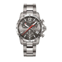 Функции: Индикация часов, минут при помощи центральных стрелок. Окошко даты на 4 часа. Хронограф. Счетчик 1/10 сек расположен в положении 2 часа, 30-минутный счетчик на 10 часов, малая секунда на 6 часов. Тахиметрическая шкала на безеле. Индикатор окончания срока службы элемента питания