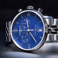 Корпус: Корпус из полированной/матовой нержавеющей стали. Люминесцентное покрытие на стрелках и частично часовой разметке. Сапфировое стекло с антибликовым покрытием, синий циферблат, серебристые стрелки и риски. Диаметр 42 мм. Водостойкость 100 м. Система DS.