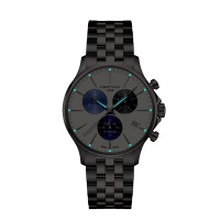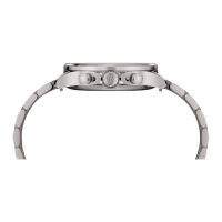 Функции: Центральные часовая и минутная стрелки, секундная стрелка вынесена на отдельный циферблат. Окошко даты находится в положении 4 часов. Хронограф.