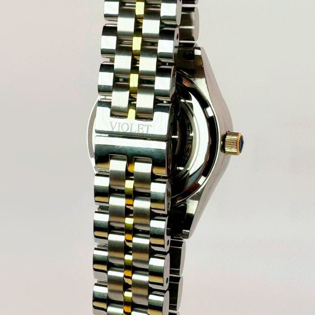 Ремешок: Браслет выполнен из высококачественной стали с повышенной устойчивостью к коррозии, поверхность с матовой шлифовкой – сатинированием и полировкой до зеркального блеска с частичным IP -покрытием. Раскладывающаяся застежка с кнопочной фиксацией.