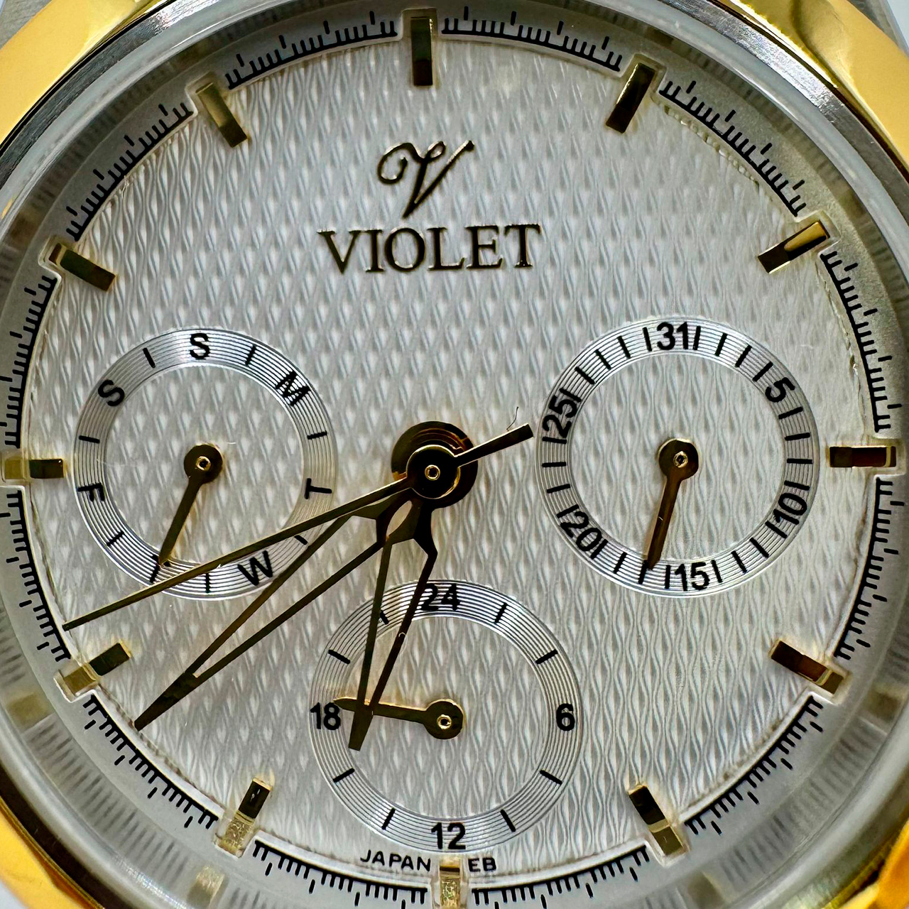 Корпус: Корпус выполнен из высококачественной стали с повышенной устойчивостью к коррозии, поверхность с матовой шлифовкой – сатинированием и полировкой до зеркального блеска с частичным IP -покрытием. Металлик циферблат. Накладные часовые индексы и стрелки выполнены из стали с позолотой. Сапфировое стекло устойчивое к возникновению царапин. Диаметр корпуса составляет: 32 мм. Водостойкость: WR 50 (мытье рук, дождь).