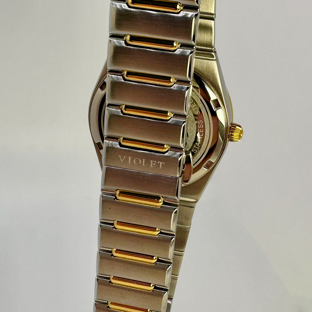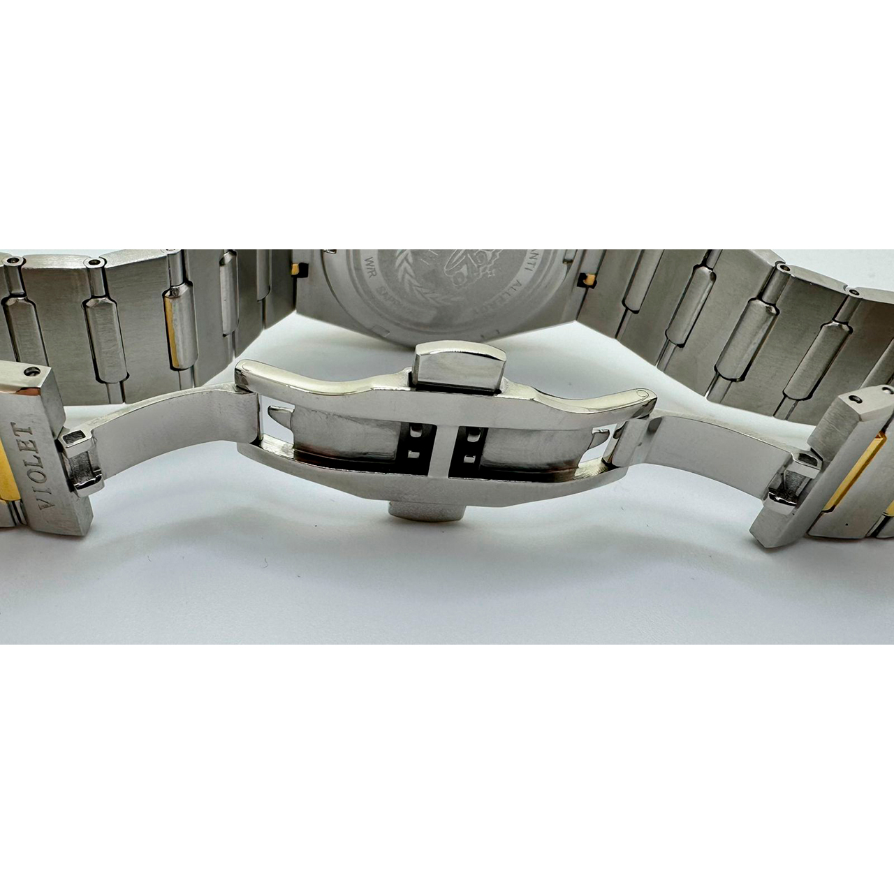 Ремешок: Браслет выполнен из высококачественной стали с повышенной устойчивостью к коррозии, поверхность с матовой шлифовкой – сатинированием и полировкой до зеркального блеска с частичным IP -покрытием. Раскладывающаяся застежка с кнопочной фиксацией.