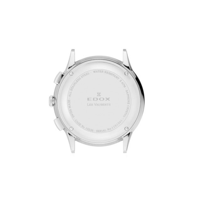 Функции: Центральные часовая и минутная стрелки, 3 дополнительных циферблата: секундный циферблат, 30-минутный и 12-часовой счетчики хронографа, окошко даты.