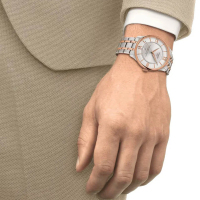 Ремешок: Браслет выполнен из стали с повышенной устойчивостью к коррозии, поверхность с матовой шлифовкой – сатинированием и полировкой до зеркального блеска, с частичным PVD покрытием. Раскладывающаяся браслетная застежка с дополнительным защитным фиксатором украшена гравировкой с названием марки.