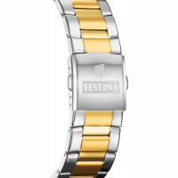 Ремешок: Надежный, прочный и элегантный браслет из нержавеющей стали с частичным PVD покрытием жёлтого золота и раскладной застёжкой. Застежка украшена фирменным логотипом Festina.