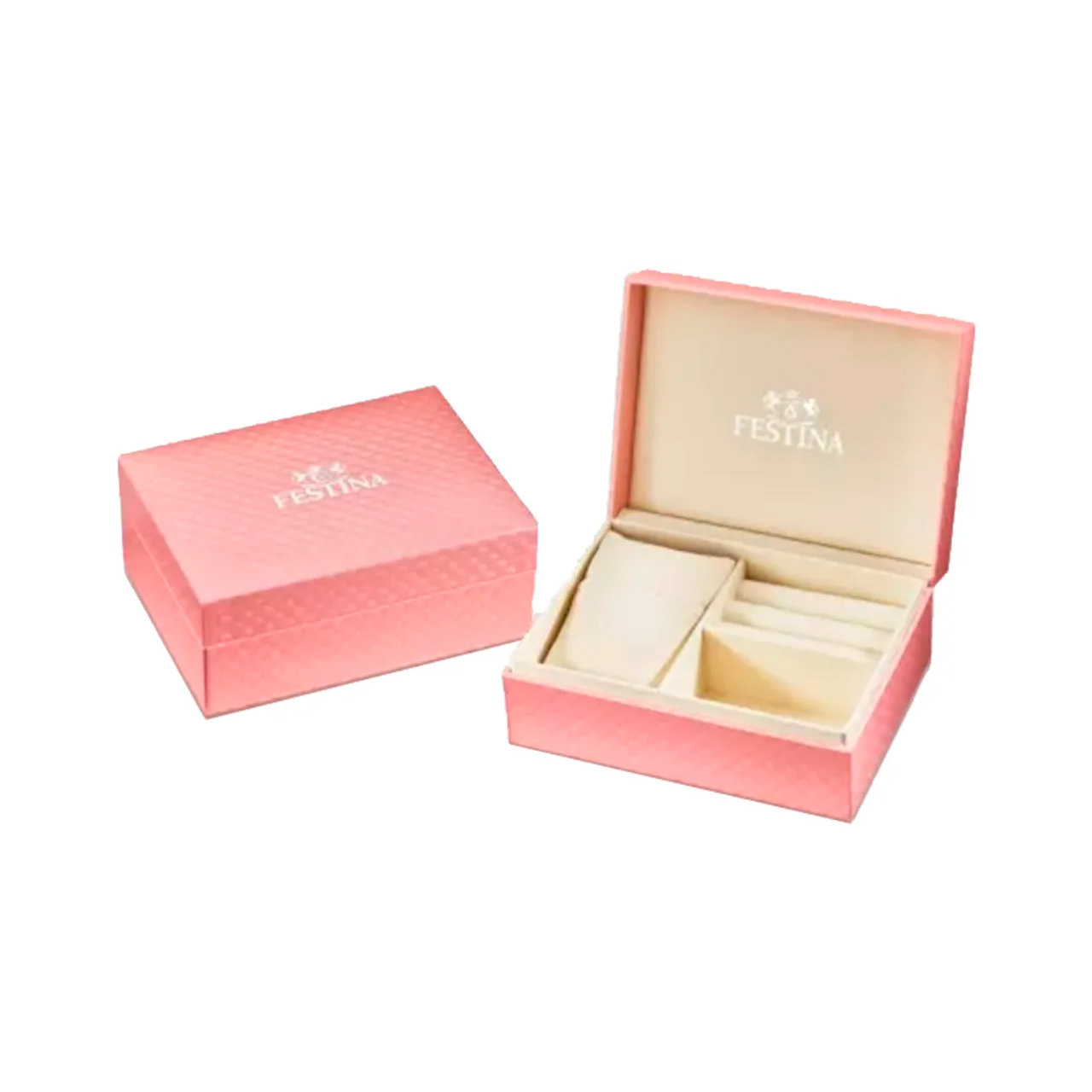 Корпус: Корпус часов изготовлен из нержавеющей стали с PVD-покрытием из розового золота. Красивый белый перламутровый циферблат обрамлен декоративными стразами, которые очень красиво переливаются, особенно в солнечных лучах. Часовые метки в виде штрихов, точек и арабской цифры 12. Рифленая заводная головка с защитой. Диаметр: 38,1мм, толщина 11,8мм. Водонепроницаемость часов составляет 100 м (10 АТМ), поэтому они легко выдержат душ или плавание.