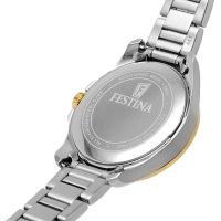 Корпус: Корпус круглой формы выполнен из нержавеющей стали марки 316L. Стойкое PVD покрытие желтым золотом на безеле и переводной коронке. Перламутровый циферблат украшен цирконами. Минеральное стекло. Диаметр корпуса модели составляет 34 мм. Водостойкость 50 метров (5 АТМ).