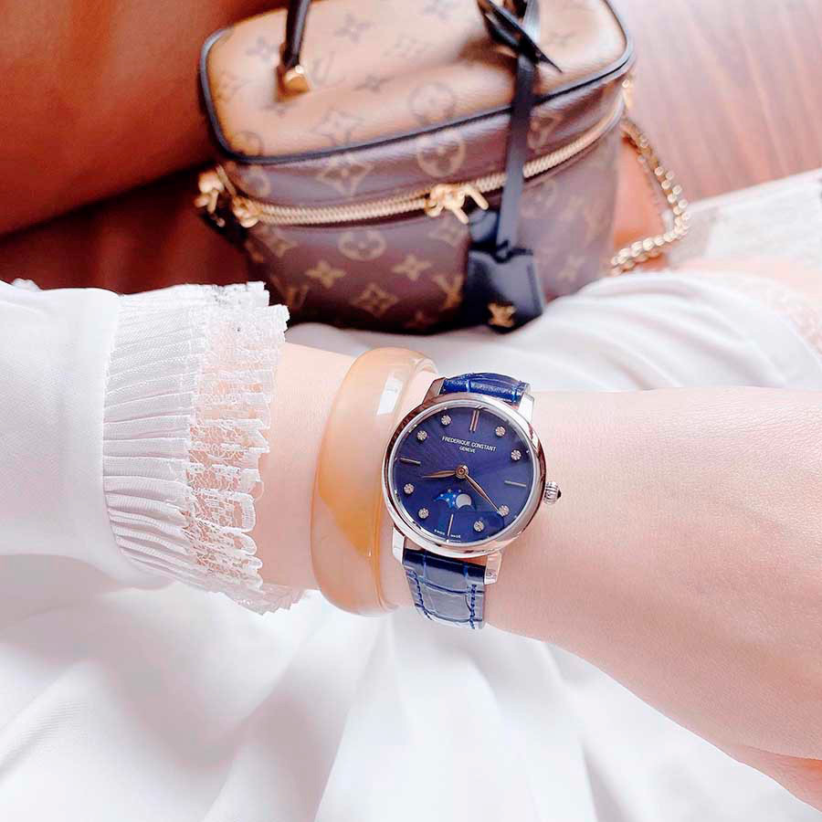 Корпус: Корпус выполнен из высококачественной стали с повышенной устойчивостью к коррозии, поверхности с полировкой до зеркального блеска. Синий перламутровый циферблат. Часовые метки украшены бриллиантами. Стрелки часов и индексы изготовленны из полированной стали. Сапфировое стекло. Диаметр 30 мм. Водостойкость 30 м.