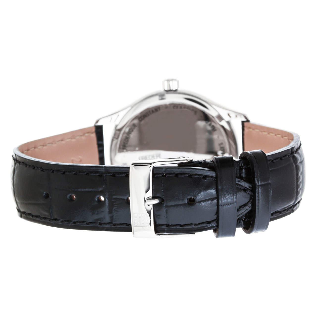 Корпус: Корпус из нержавеющей полированной стали. Металлик циферблат с серебристыми стрелками и рисками. Декор в технике гильоше. Сапфировое стекло. Диаметр 40 мм. Водозащита 50 м.