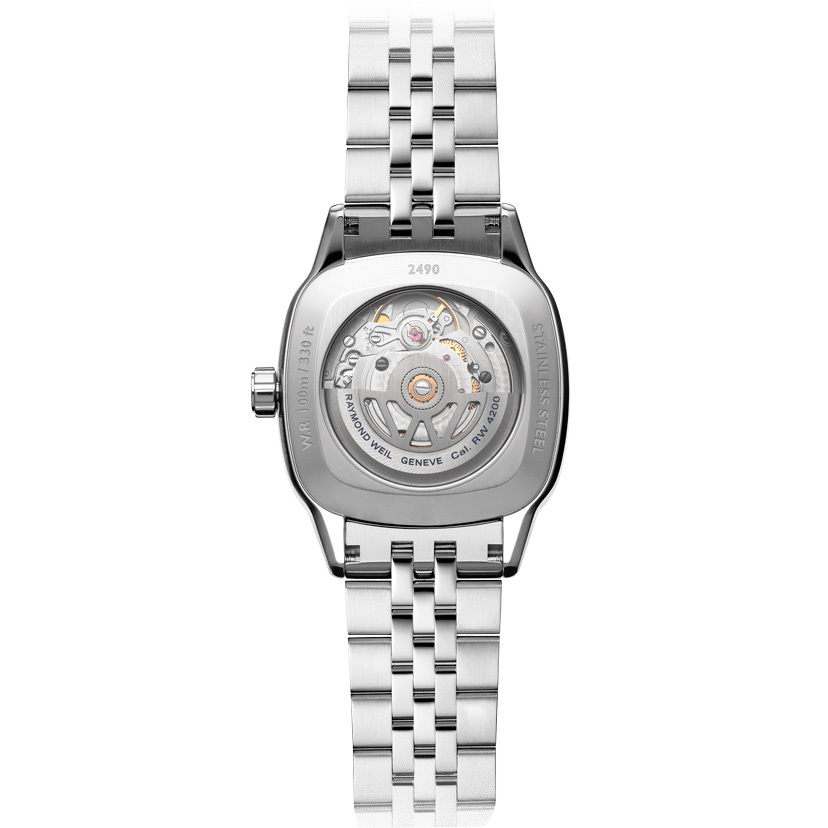 Ремешок: Браслет из высококачественной стали с 5 рядами литых звеньев. Браслетная застежка, раскладывающаяся при нажатии на кнопки с двойной системой блокировки, украшена гравировкой Raymond Weil.