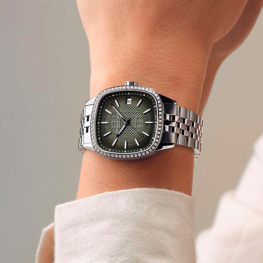 Ремешок: Браслет из высококачественной стали с 5 рядами литых звеньев. Браслетная застежка, раскладывающаяся при нажатии на кнопки с двойной системой блокировки, украшена гравировкой Raymond Weil.