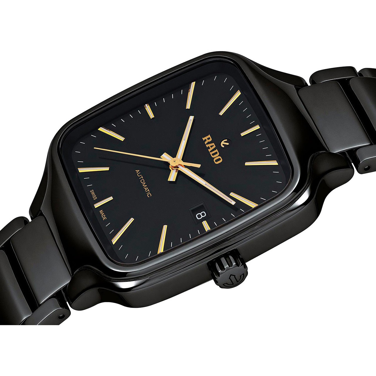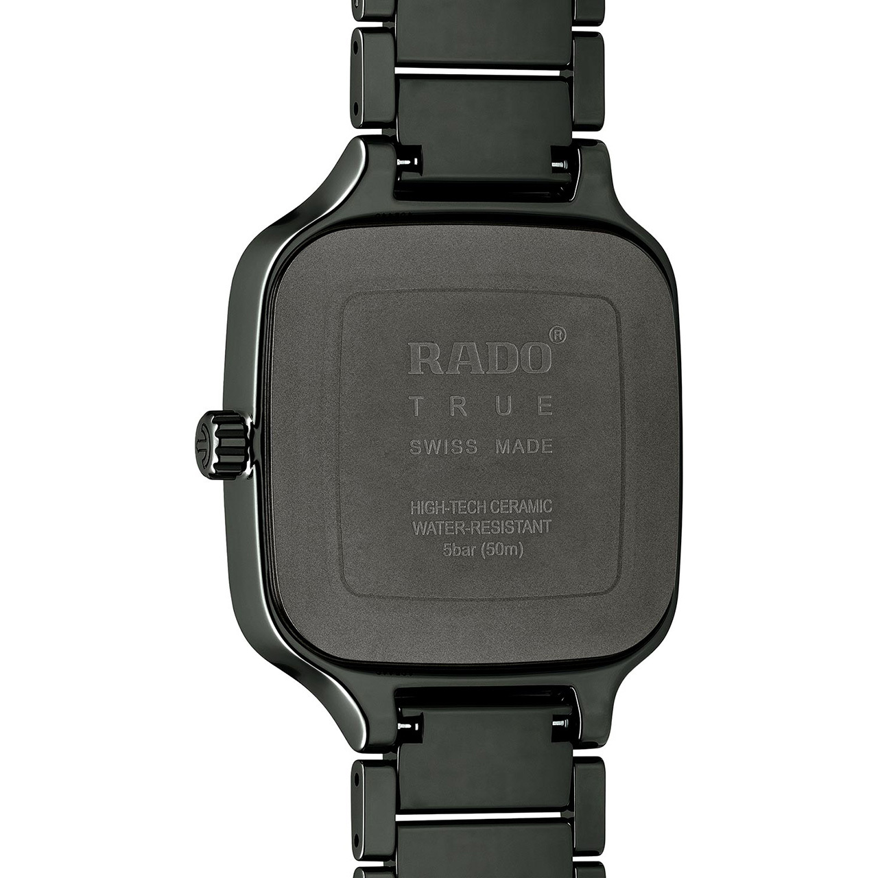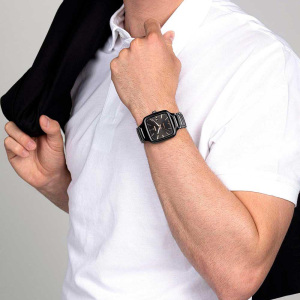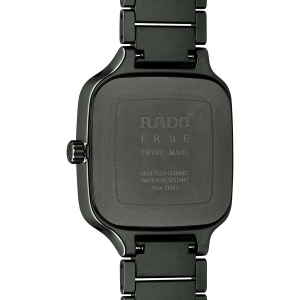 Корпус: Высокотехнологичная керамика чёрного цвета квадратной формы с корпусом моноблок. Циферблат чёрного цвета, позолоченные стрелки и часовые индексы с люминесцентным покрытием. Сапфировое стекло с антибликовым покрытием. Прозрачная задняя крышка из сапфирового стекла. Водозащита 50 м. Размер 38 x 38 мм, толщина 9,6 мм.