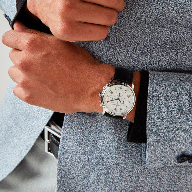 Корпус: Корпус из нержавеющей полированной стали. Гильошированный циферблат белого цвета, часовая и минутная стрелки в стиле "Breguet". Сапфировое стекло. Диаметр 40 мм. Водозащита 60 м.