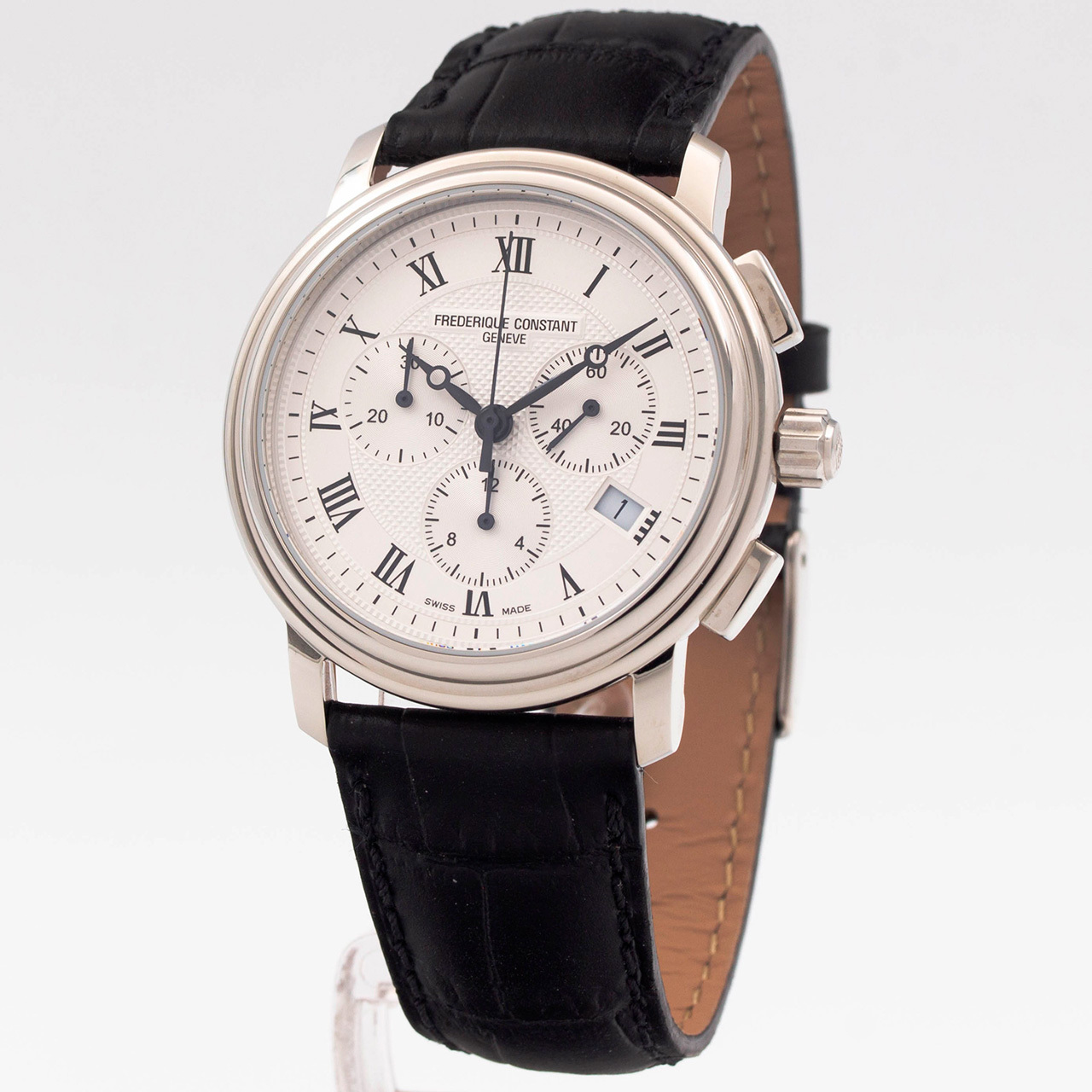 Функции: Индикация часов и минут центральными стрелками. Хронограф с 30-минутным, 12-часовым и центральным секундным счетчиками. Индикация даты на "4" часа, вынесенная секундная стрелка.