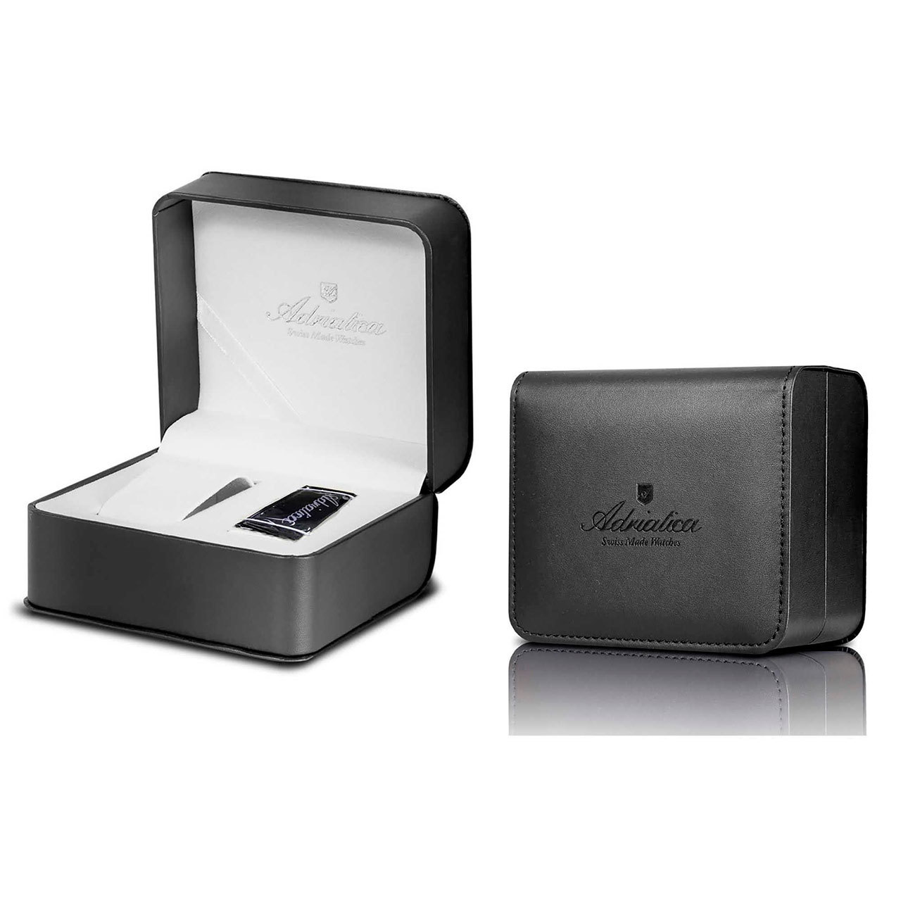 Корпус: Круглый корпус выполнен из полированной нержавеющей. Чёрный перламутровый циферблат и украшен 12 кристаллами. Накладные часовые метки и стрелки выполнены из стали. Минеральное стекло. Диаметр корпуса составляет 34 мм, толщина 7 мм. Водостойкость WR 30 (мытье рук, дождь).