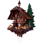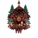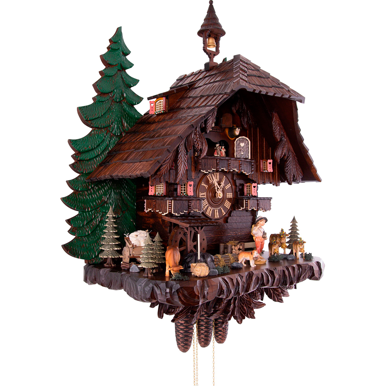 Механизм: Механические часы с кукушкой, которые работают от гирь на цепной тяге. Сделан механизм на фирме SBS-Feintechnik GmbH & Co. KG Германия. Шварцвальдский дом с пастухом и танцующими парами на балконе. Запас хода на 8 дней. Ручное отключение звука. В каждые пол часа кукушка появляется из своего домика, наклоняется и воспроизводит звук кукушки (ку-ку) один раз, в каждый полный час она кукует столько раз сколько показывают стрелки на часах. После этого на балкончике начинают кружиться в танце деревянные фигурки под музыку (2 мелодии чередуются). Одна гиря в данных часах отвечает за ход часового механизма, вторая за механизм кукушки, а третья за воспроизведение музыки, как в музыкальной шкатулке и движение танцующих фигурок на балконе.