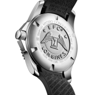 Корпус: Корпус из нержавеющей стали. Черный циферблат. Сапфировое стекло с антибликовым покрытием. Завинчивающиеся задняя крышка и заводная головка. Однонаправленно вращающийся безель из керамики. Диаметр 41 мм. Водозащита 300 м.
