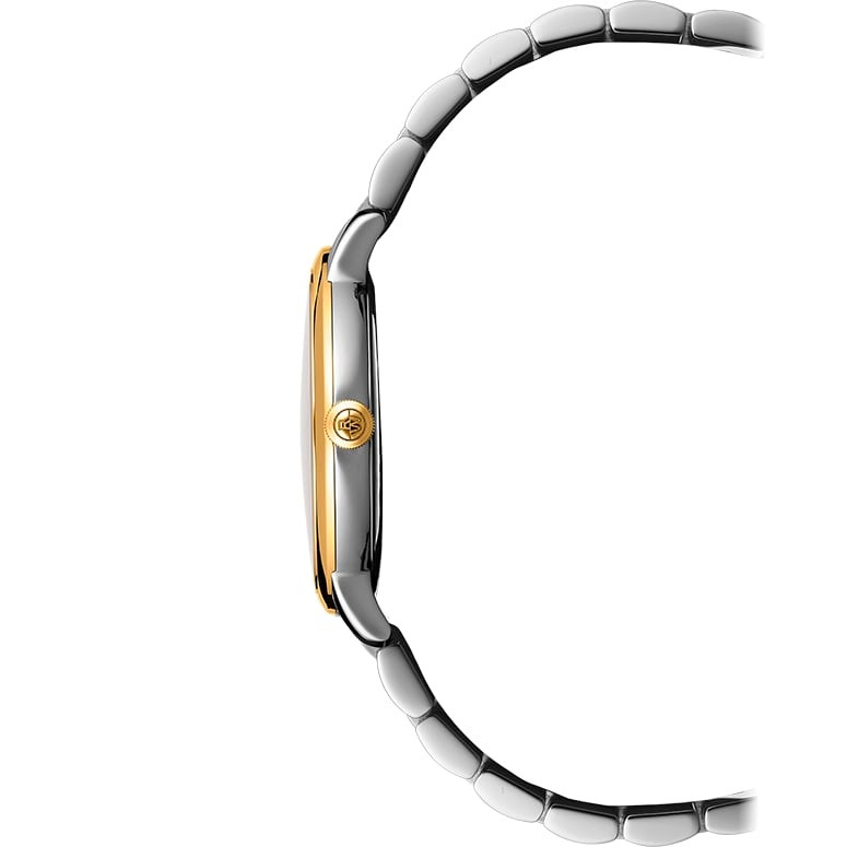 Ремешок: Браслет из высококачественной стали с 5 рядами литых звеньев, два центральных ряда с PVD покрытием цвета желтого золота. Браслетная застежка, раскладывающаяся при нажатии на кнопки с двойной системой блокировки, украшена гравировкой RW.