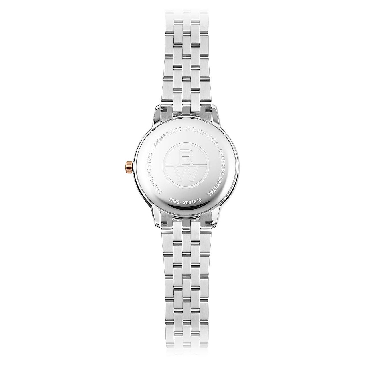 Корпус: Корпус из нержавеющей стали марки 316L. Безель и переводная коронка с PVD покрытием цвета розового золота. Циферблат чёрного цвета, инкрустирован 11 бриллиантами, общим весом 0,04 карата, граненые стрелки имеют покрытие цвета золота. Сапфировое стекло имеет повышенную устойчивость к возникновению царапин. Переводная коронка украшена логотипом RW. Диаметр 29 мм, толщина 6,7 мм. Водостойкость 50 метров.