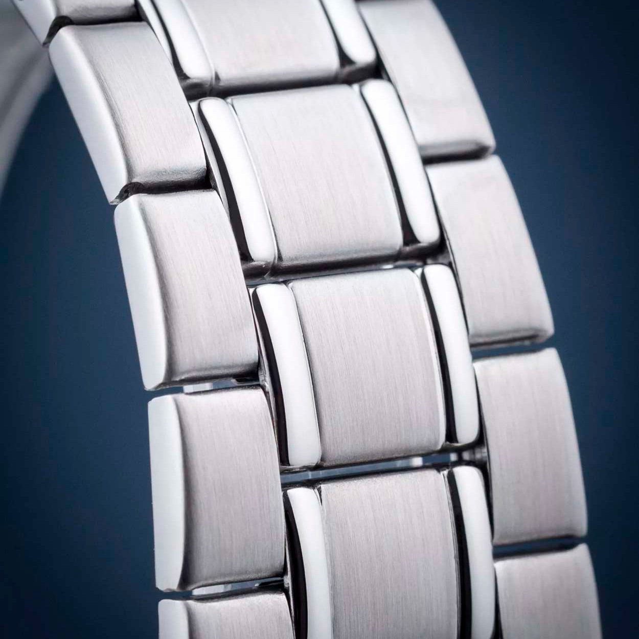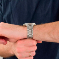 Ремешок: Браслет из нержавеющей стали, поверхности с матовой шлифовкой - сатинированием и полировкой. Браслетная раскладывающаяся застежка с дополнительным защитным фиксатором, гравировка с названием марки и ее эмблема.