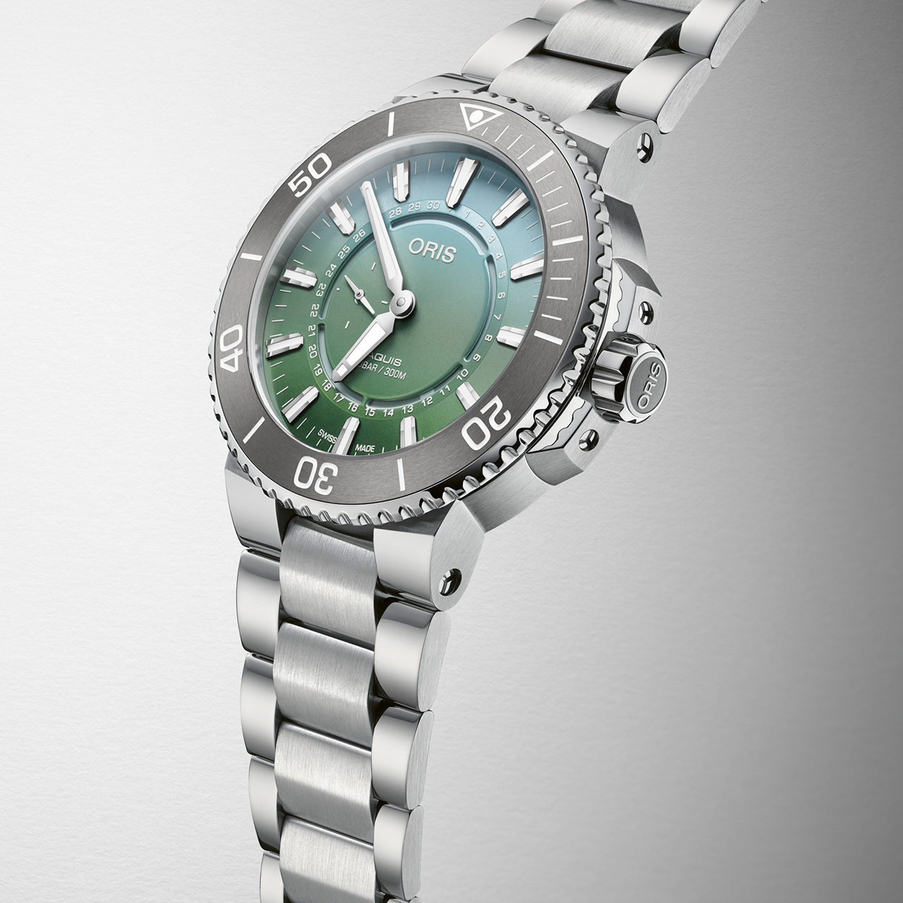 Ремешок: Браслет из нержавеющей стали с запатентованной компанией Oris раскладывающейся застёжкой. Поставляется в комплекте со сменным каучуковым ремешком.