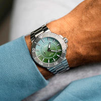 Корпус: Многокомпонентный корпус из нержавеющей стали. Керамический безель с минутной шкалой вращается в одном направлении. Циферблат выполнен по технологии Sunray (солнечные лучи) зелёного цвета. Сапфировое стекло, выпуклое с обеих сторон, внутреннее антибликовое покрытие. Индексы и стрелки покрыты составом Superluminova BG W9. Завинчивающаяся задняя крышка со специальной гравировкой. Завинчивающаяся заводная головка из нержавеющей стали. Диаметр: 43,5 мм. Водонепроницаемость: 300 метров.