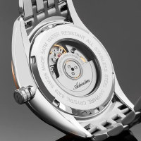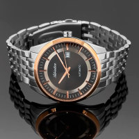 Корпус: Круглый корпус выполнен из полированной нержавеющей стали. Чёрный циферблат выполнен по технологии Sunray (солнечные лучи). Накладные часовые индексы выполненый из сталии с покрытием золота. Стрелки с покрытием SuperLuminova, которое обеспечивает подсветку в темное время суток. Сапфировое стекло устойчивое к возникновению царапин. Диаметр корпуса составляет 43 мм, толщина 10 мм. Водостойкость WR 50 (мытье рук, дождь).