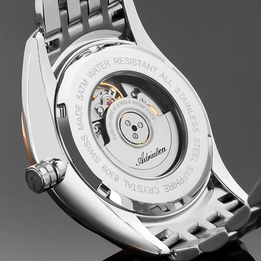 Механизм: Механический с автоподзаводом швейцарский механизм. Калибр: RONDA 150