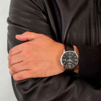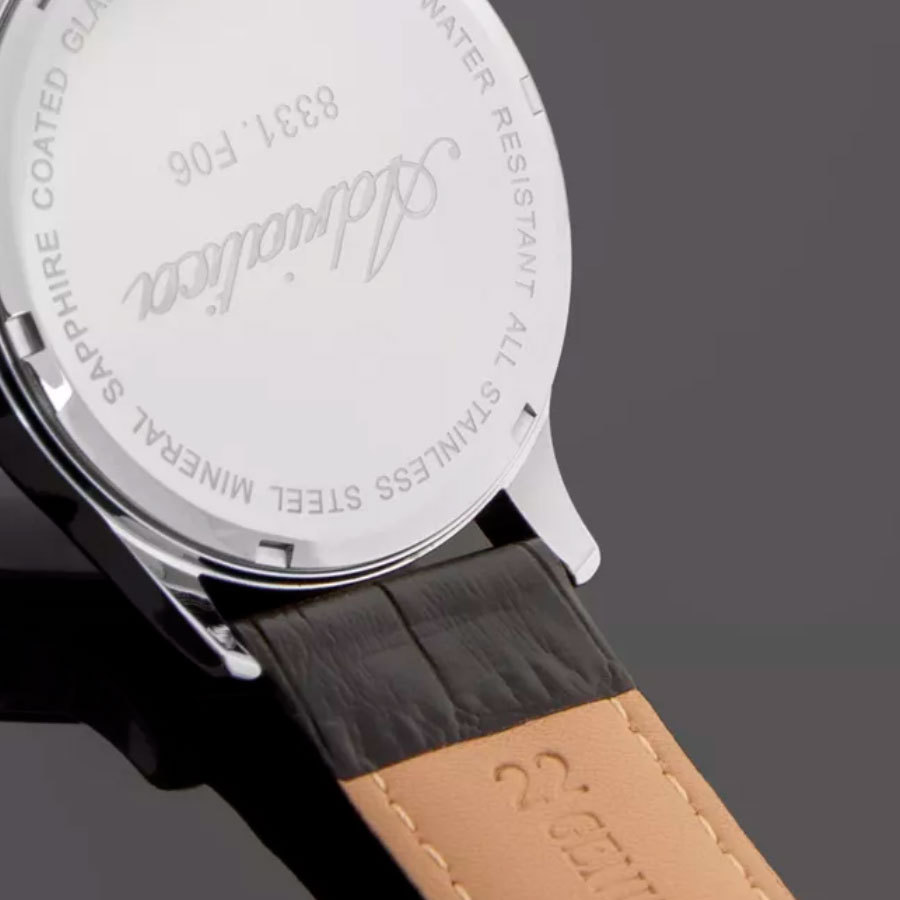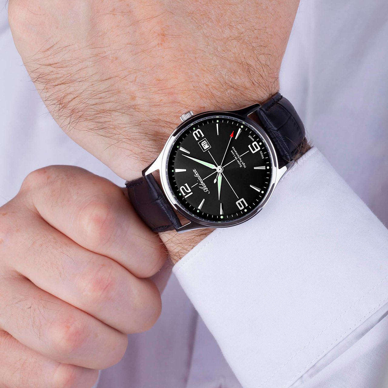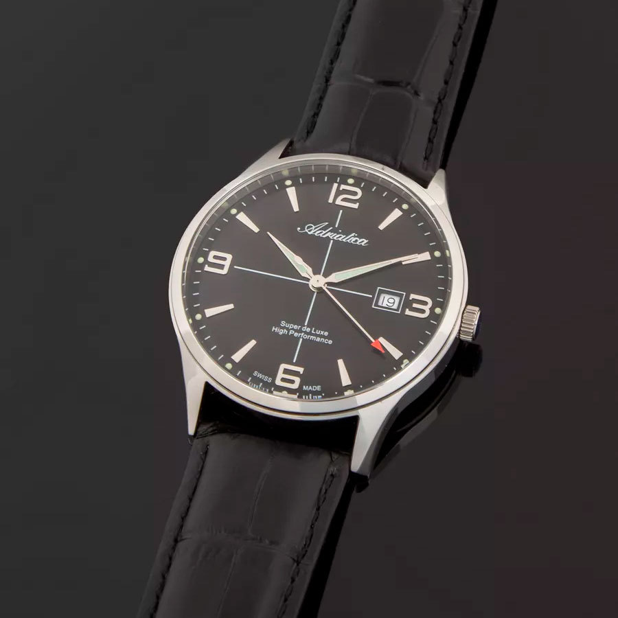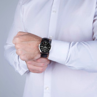 Корпус: Круглый корпус выполнен из полированной нержавеющей стали. Чёрный циферблат. Накладные часовые индексы выполнены из стали. Стрелки с покрытием SuperLuminova, которое обеспечивает подсветку в темное время суток. Минеральное стекло. Диаметр корпуса составляет 42 мм, толщина 10 мм. Водостойкость WR 50 (мытье рук, дождь).