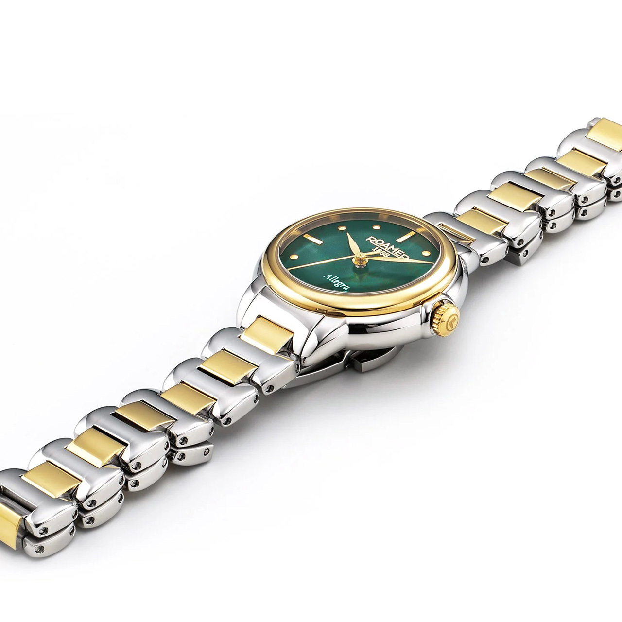 Корпус: Корпус из нержавеющей полированной стали с частичным IP покрытием. Зелёный перламутровый циферблат с серебристыми стрелками. Сапфировое стекло, устойчивое к царапинам с антибликовым покрытием. Диаметр 32 мм. Водонепроницаемость 30 м.