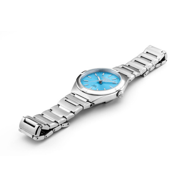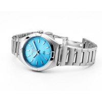 Корпус: Корпус выполнен из высококачественной нержавеющей стали 316L с полировкой и матовой шлифовкой - сатинированием. Циферблат голубого цвета, выполнен по технологии Sunray (солнечные лучи). Метки в виде штрихов и стрелки с люминесцентным покрытием Super-LumiNova. Сапфировое стекло с антибликовым покрытием. Рифленая заводная головка. Диаметр: 34 мм. Водонепроницаемость: 50 м.