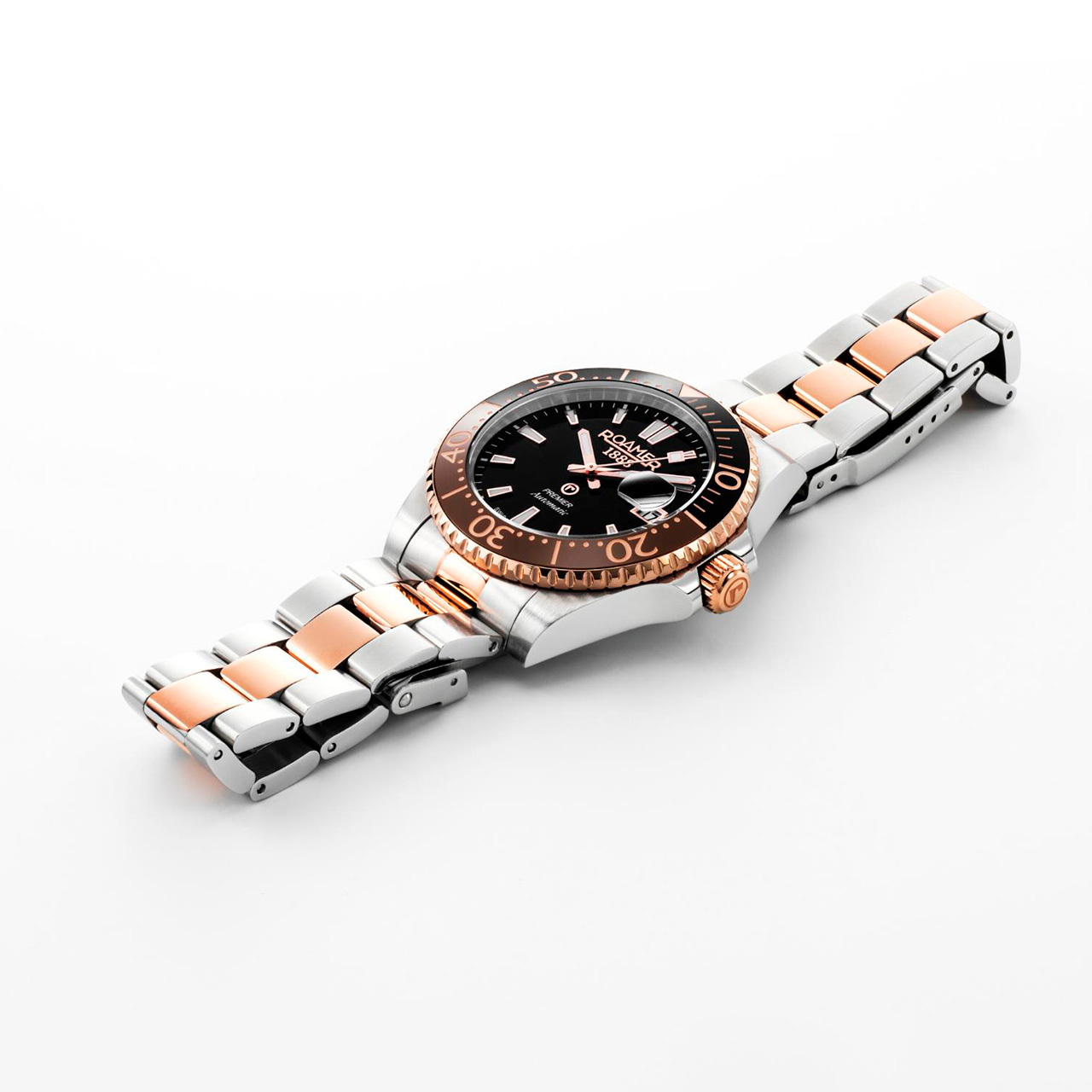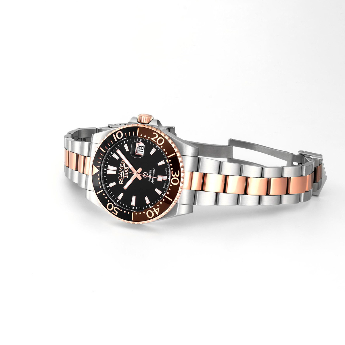 Корпус: Корпус выполнен из высококачественной нержавеющей стали 316L с частичным покрытием розового золота.Чёрный циферблат, позолоченные стрелки и часовые индексы с люминесцентным покрытием для оптимальной разборчивости в условиях низкой освещенности. Сапфировое стекло с антибликовым покрытием. Диаметр: 42 мм. Водозащита: 200 м.