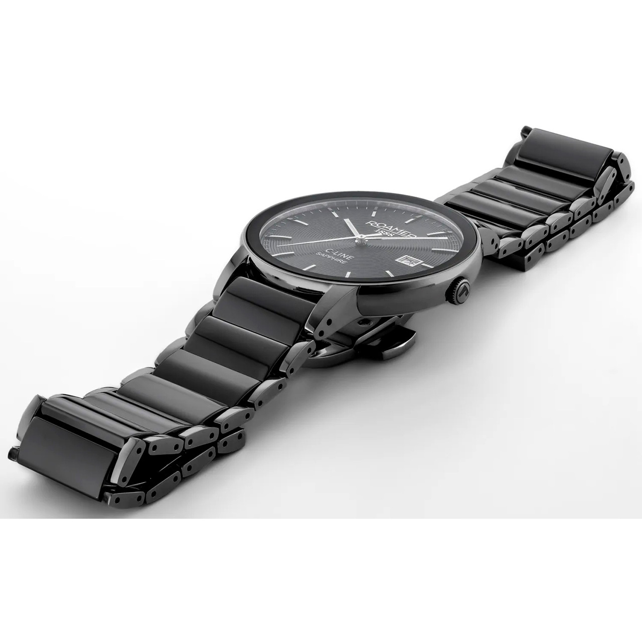 Ремешок: Часы оснащены металлическим браслетом с PVD-покрытием и черными керамическими вставками. Браслетная застежка с тройным сложением – «бабочка».