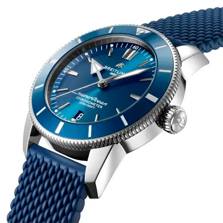 Корпус: Корпус из полированной стали, синий зубчатый вращающийся безель с индексами. Синий циферблат, ретро логотип бренда, стрелки с крупными люминесцентными вставками, полированные минутные индексы. Выпуклое сапфировое стекло с двусторонним антибликовым покрытием. Диаметр 44 мм. Водонепроницаемость 200 м.