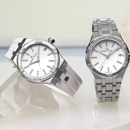Ремешок: Браслет из нержавеющей стали с литыми звеньями в пять рядов, система быстрой замены ремешка/браслета, браслетная застежка с тройным сложением – «бабочка», раскладывающаяся при нажатии кнопок двойной блокировки, гравировка Maurice Lacroix.