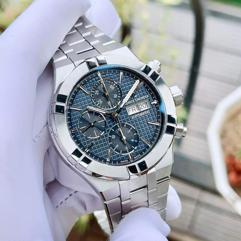 Корпус: Корпус и безель из матовой/полированной нержавеющей стали. Чёрный циферблат украшен гильоше, серебристые стрелки. Сапфировое стекло с антибликовым покрытием. Водонепроницаемость 200 метров, завинчивающаяся заводная коронка. Размер 44 мм.