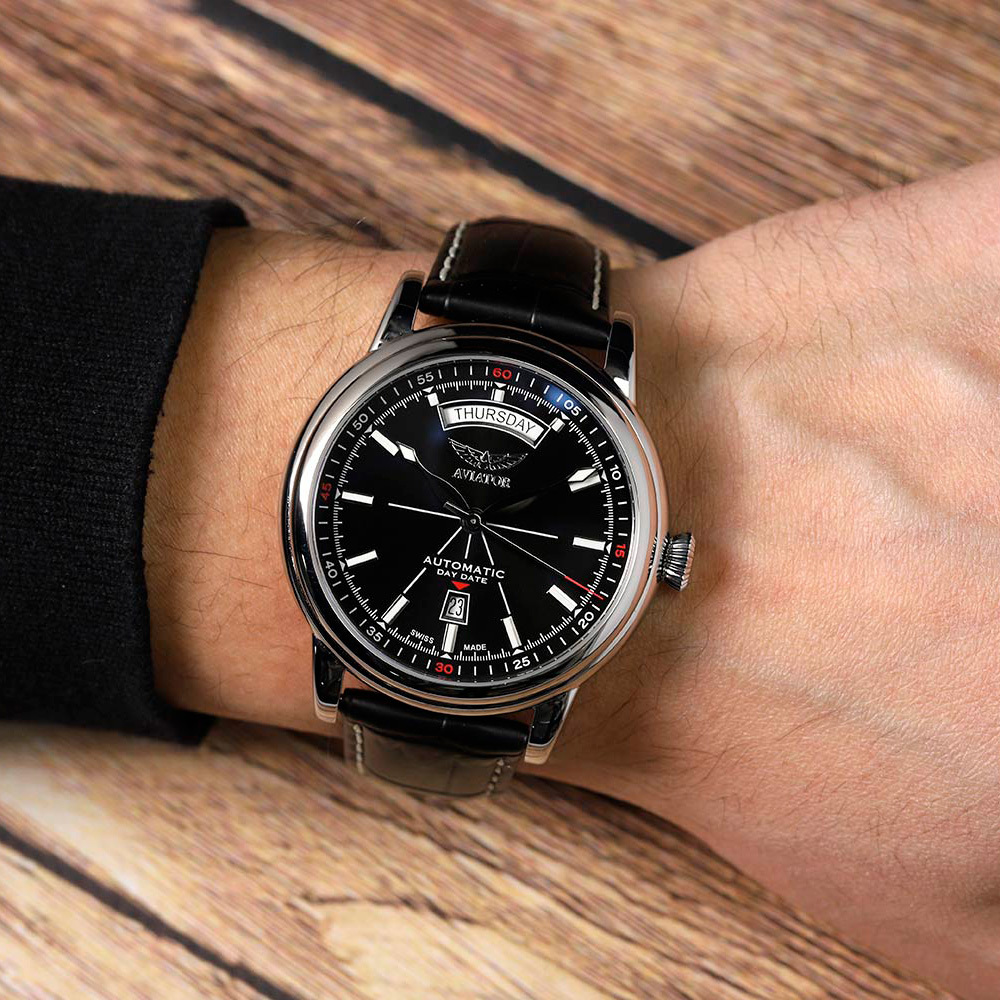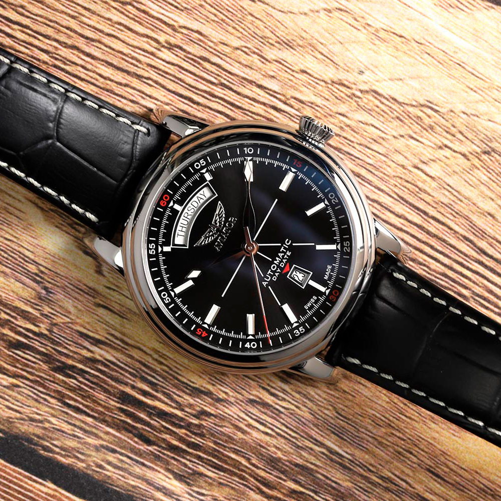 Функции: Индикация часов, минут и секунд при помощи центральных стрелок. Дата в положении "6 часов". День недели в положении " 12 часов".