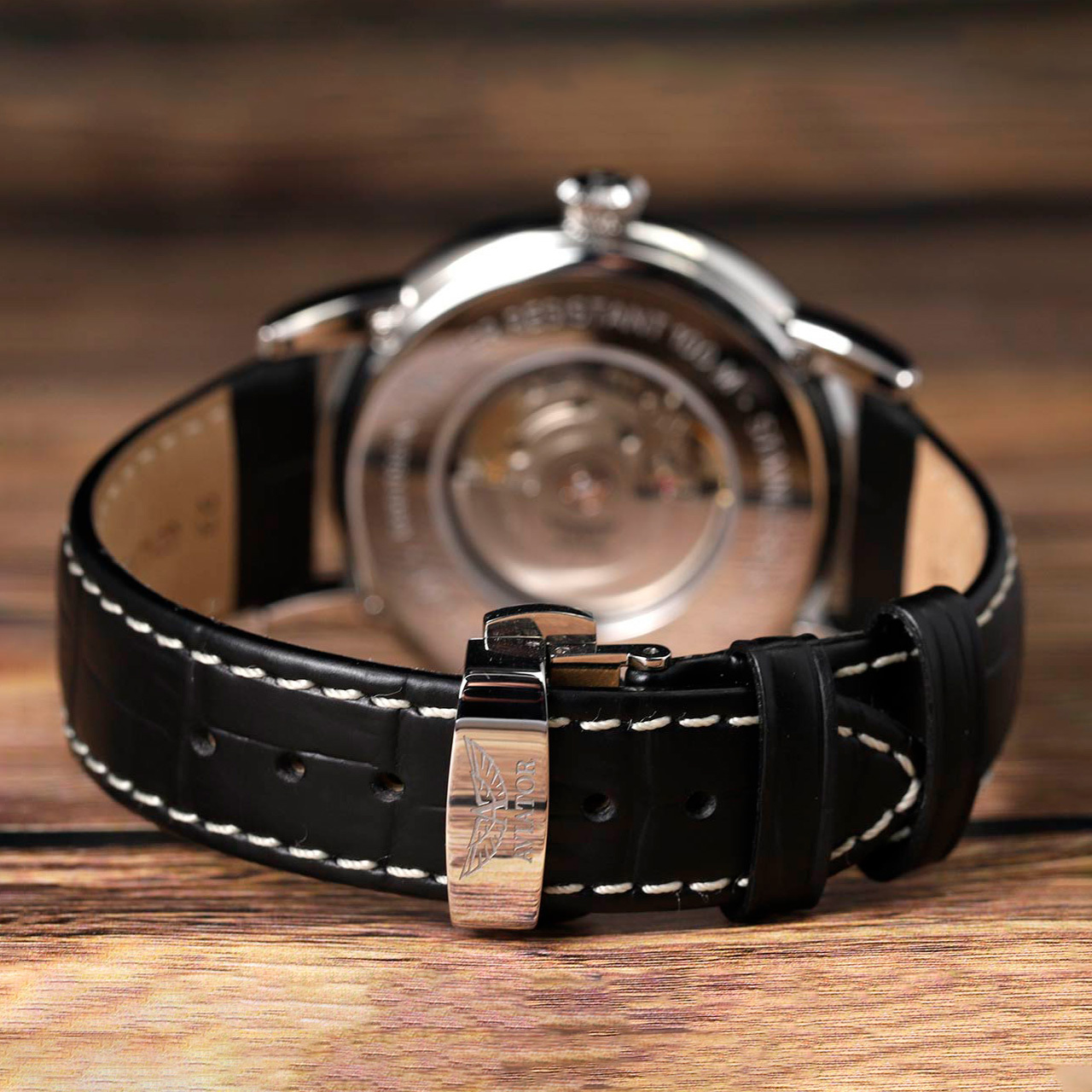 Корпус: Корпус из нержавеющей полированной/матовой стали. Чёрный циферблат с серебристыми стрелками. Люминесцентное покрытие индексов, стрелок. Сапфировое стекло с антибликовым покрытием. Диаметр 45 мм. Водостойкость 50 м.