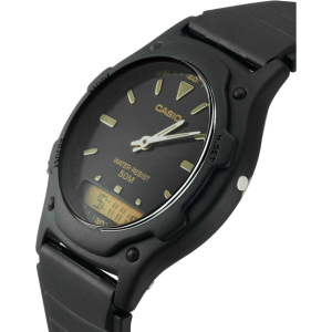 Корпус: Полимерный корпус чёрного цвета надежно защищает часы от механических повреждений. Акриловое стекло. Стрелки и метки покрыты люминесцентным покрытием (светятся в темноте). Габаритные размеры: 38,8x44,7мм, толщина 10,1мм, вес 30г. Водозащита: 50м.
