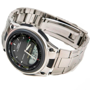 Функции: Аналого-цифровая индикация. На циферблате отображается текущее число, месяц и день недели.12-ти и 24-х часовой формат отображения времени. Минутная шкала на циферблате. Секундомер с точностью показаний 1/100с и временем измерения 24ч. Таймер обратного отсчета от 1мин до 1ч. Мировое время – 30 городов (29 часовых поясов), функция включения/отключения летнего времени DST. Записная книжка на 30 ячеек памяти с функцией сортировки для записи имен и телефонных номеров, каждая запись может включать в себя текст из 8 букв и 16 цифр. 3 независимых будильника, один с функцией повтора сигнала Snooze, сигнал начала часа. Автоматический календарь до 2099 г.