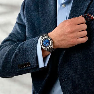 Корпус: Корпус изготовлен из стали марки 316L. Синий циферблат. Аппликация часовых индексов и стрелки с покрытием Super-Luminova®. Сапфировое стекло с устойчивостью к царапинам и антибликовым покрытием обеспечивает долговечность и удобство использования. Диаметр корпуса: 43 мм. Водостойкость: 50М.