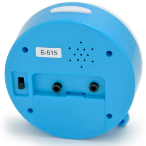 Материал и цвет: Корпус будильника сделан из качественного ABS пластика. Форма корпуса круглая. Стекло – пластиковое. Циферблат будильника разработан для упрощения процесса обучения детей определению времени. На циферблате есть часовые, в том числе в 24-часовом формате, и минутные деления.